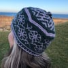 This hat was an experiment that turned into a good thing. I like hats for color work because they give me just as much as I want to do in a project. The beginning is a little slow-going, but the visual results are so worth it! I guess that is the trade off of color work!