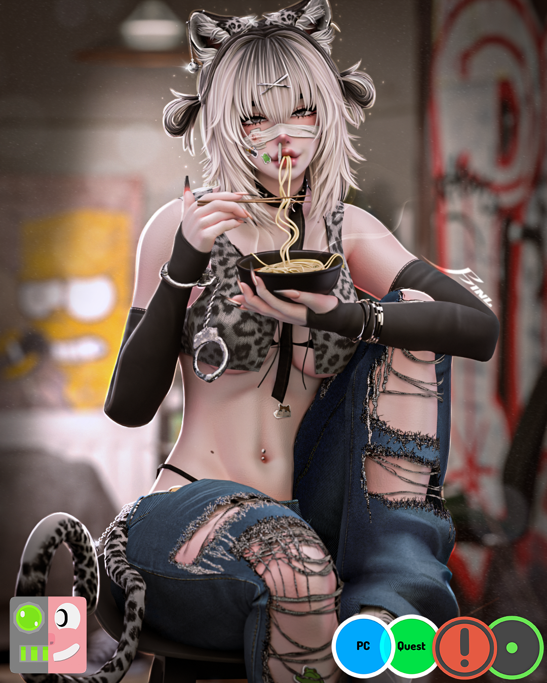 ⋆ Belt, Bracelets, Denim Skirt, Fishnet Leg, Leopard Ears, Leopard Tail, Necklaces, Phone • MilkyMutt (PHONE EDITED ON ANOTHER ASSET. NO REUSE !)