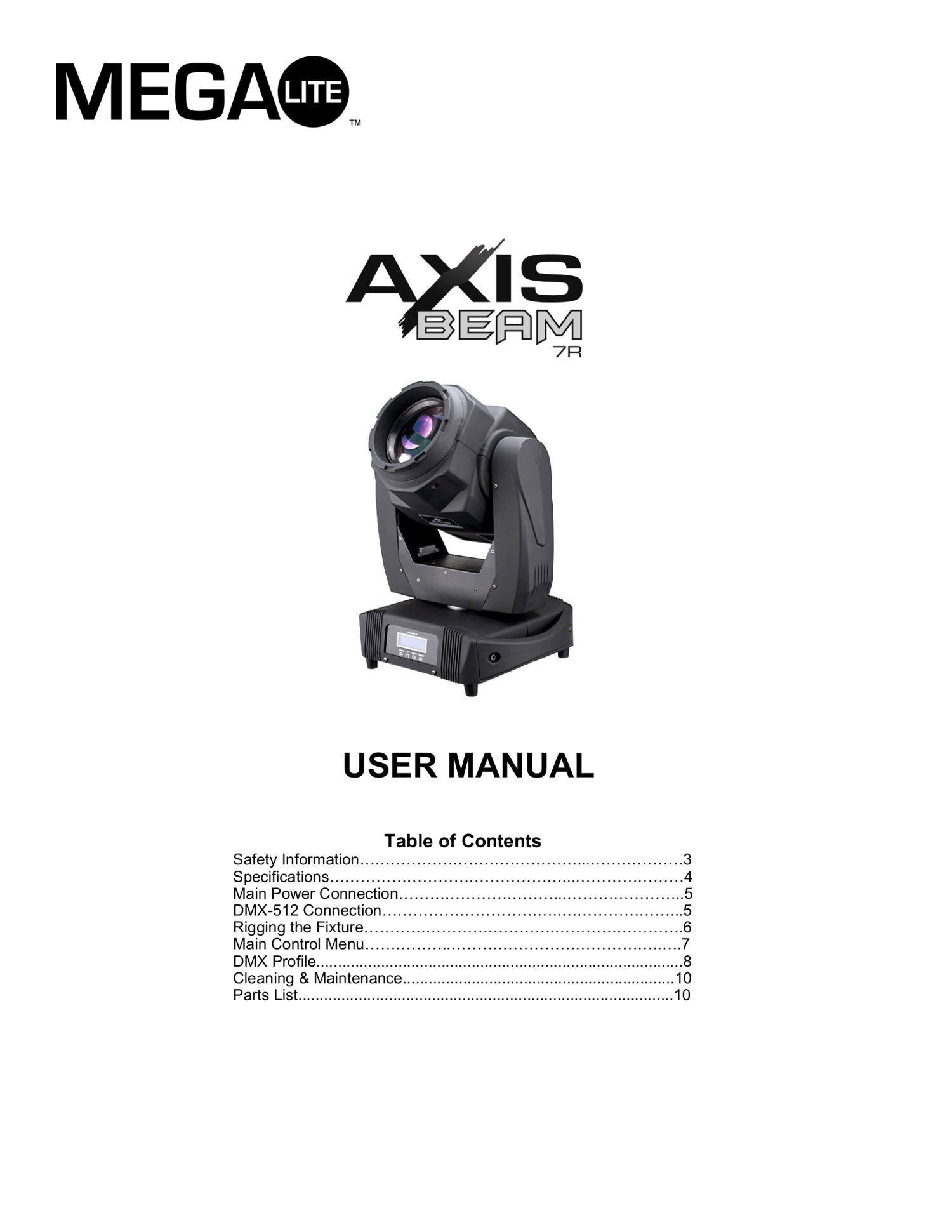 Librería para Freestyler DMX del Cabezal Móvil "Axis Beam 7R" de Mega Lite.