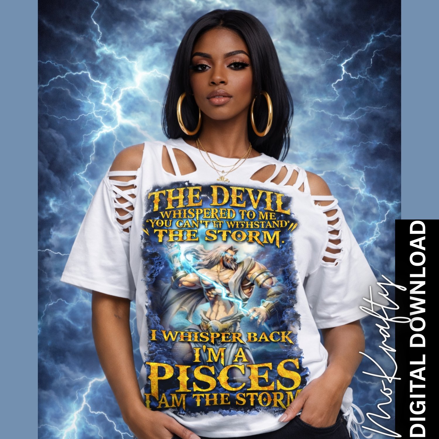 This bold zodiac PNG features dramatic lightning, powerful imagery, and a motivational quote designed for strong Pisces energy. Perfect for sublimation and DTF printing, this high-resolution transparent PNG is ideal for crafters creating statement apparel and motivational zodiac merch.