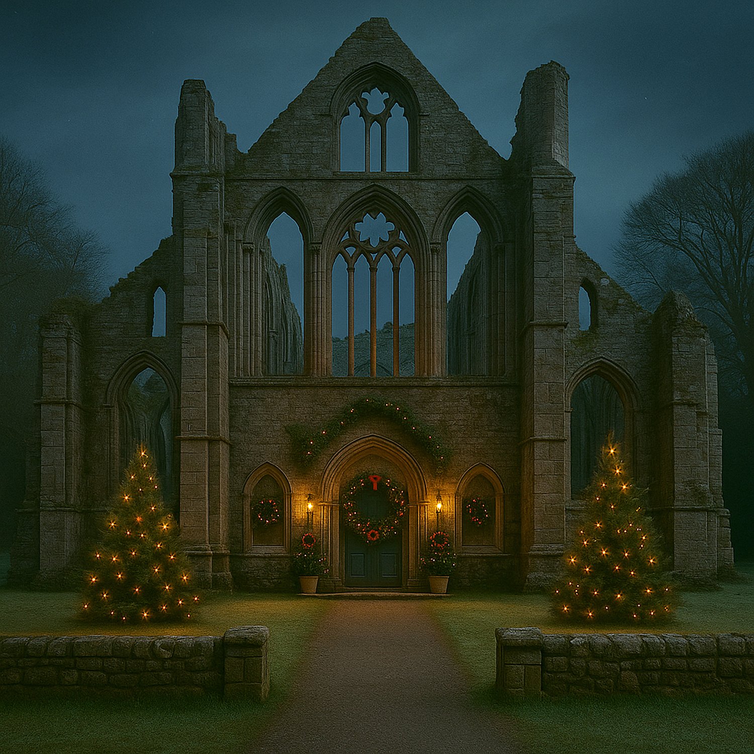 You are purchasing a high-resolution PNG holiday card artwork, Medieval Ruins, designed for print-local use or digital sending.