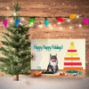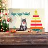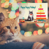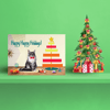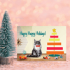 This is an adorable Christmas Holiday card that features a fancy Maine Coon cat enjoying his presents!