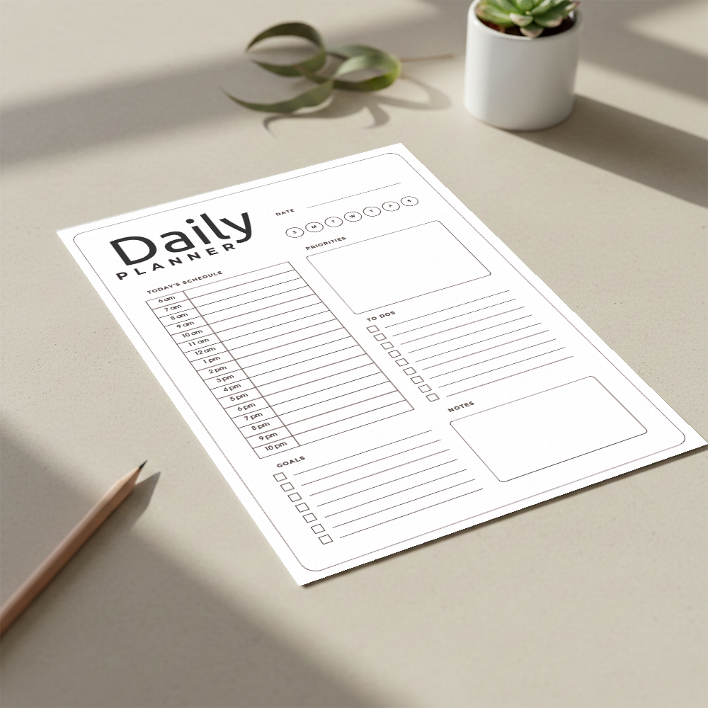 Stay organized and plan a better day with this clean and simple Daily Planner by Auctoss. Designed from the mockup you provided, this layout helps you schedule your day, track priorities, write to-dos, and note your daily goals clearly.