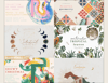 Each collection includes a complete set of elements to create a complete design for your project: illustrations, patterns, decorative elements and more. Combine and mix elements to create a wedding branding or cover for your book, create a logo and wrapping paper for your store or print a pattern and decorate a wall in your home. You can create your own design.