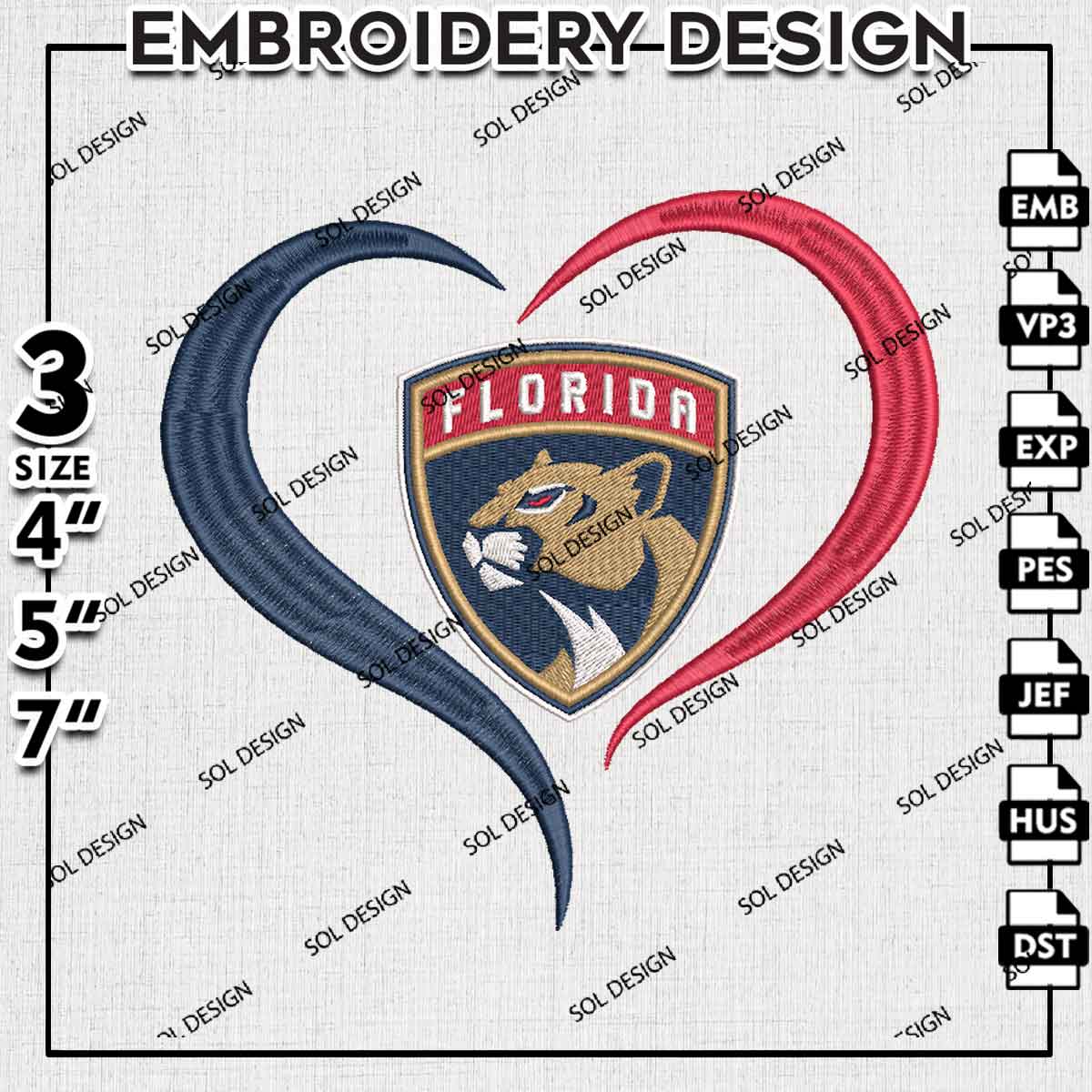 Florida Panthers Team Heart Logo Embroidery Designs, Florida Panthers Hockey Team Embroidery Files, NHL Panthers Team Logo Embroidery, NHL Hockey Team Machine Embroidery Design, 3 sizes, Digital Download