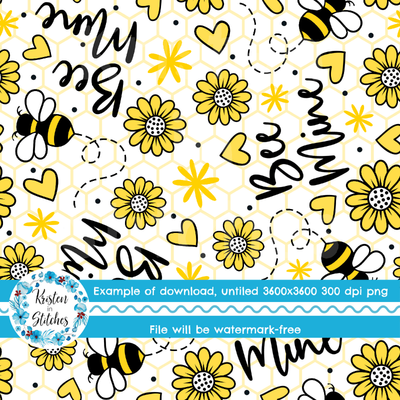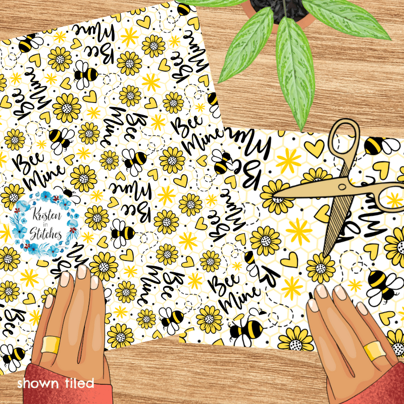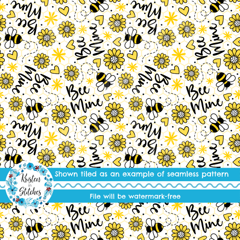 Bee Mine Be My Valentine Bumblebee Seamless Pattern, Yellow