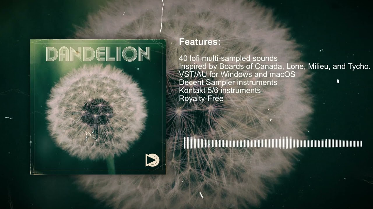 Dandelion is a lofi sound module for retro-inspired music. The 40 multi-sampled sounds included are reminiscent of the music of Boards of Canada, Lone, Lorn, Milieu, and Tycho. It can be used in music genres that require lofi dusty sounds like lofi hip hop, vaporwave, ambient, downtempo, and dungeon synth.