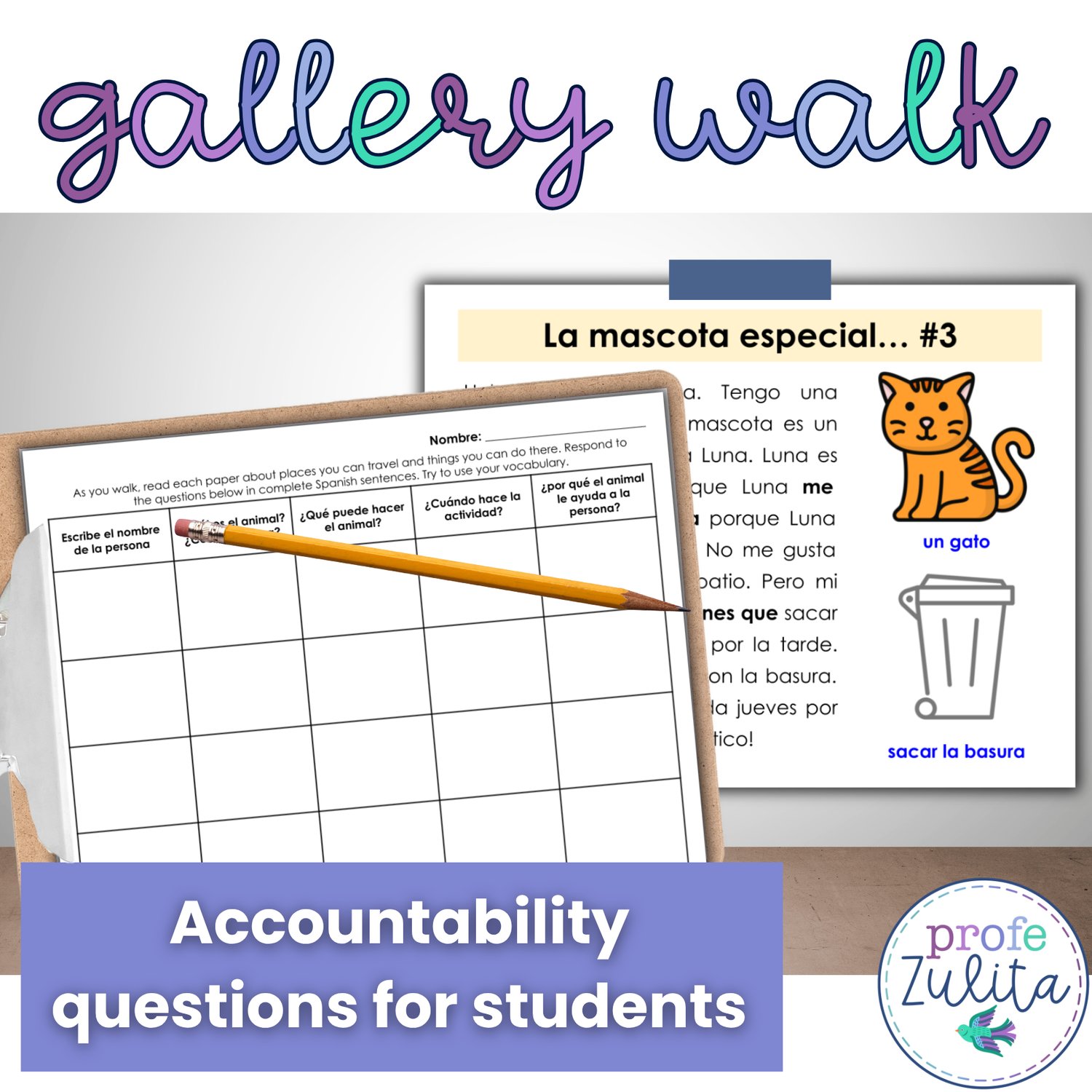 This gallery walk will provide your students with 12 focused readings written to provide structured input with Spanish chores and house vocabulary & structured phrases used with chores in Spanish. Your student will read about a student that has chores to accomplish... with the help of their talented pet friend. The chores will get done around the house thanks to the talented friend.
