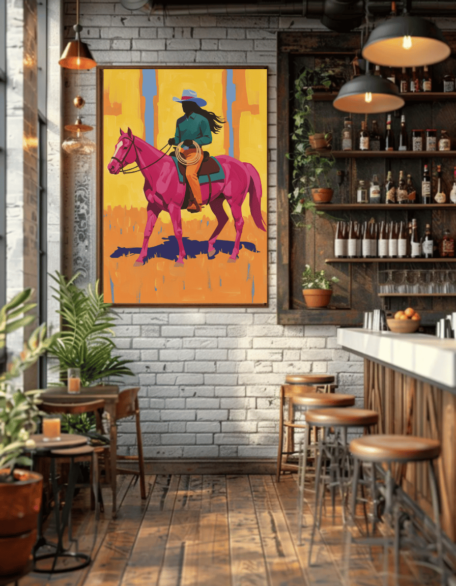 Bring the Western aesthetic and a touch of cowgirl charm to your space with this stunning digital download art print. Perfect for a rodeo bedroom, girls' room decor, or adding a coquette vibe to any apartment, this unique piece captures the free spirit of the Wild West.