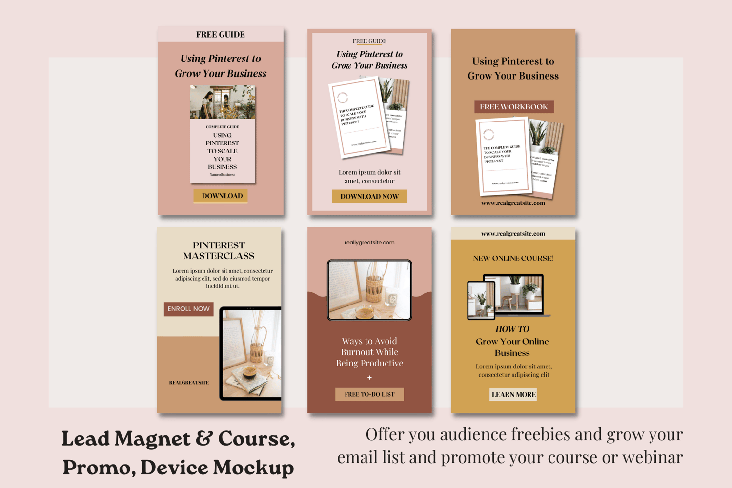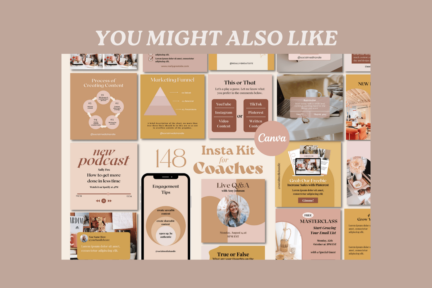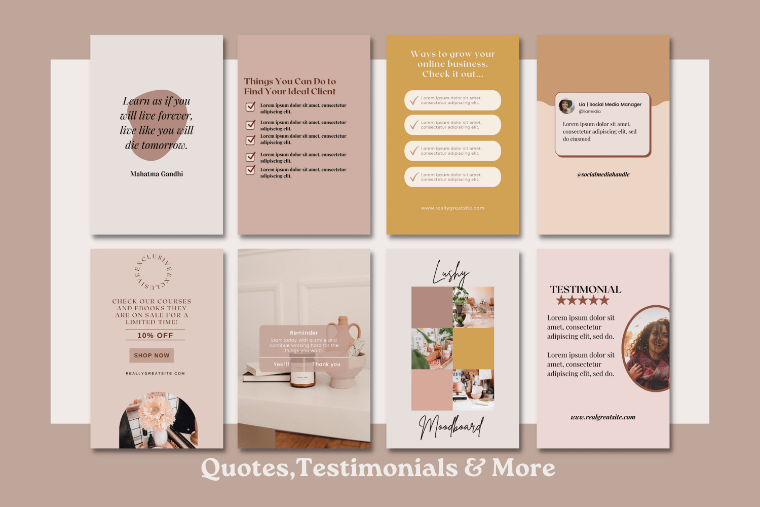 The perfect Kit for coaches, content & course creators, podcasters and entrepreneurs. It features 27 unique designs in 2 sizes - 1000x1500px 2:3 ratio size and 1080x1920px 9:16 ratio size and in total 54 templates.