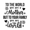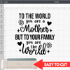 To the World you Are a Mother But to Your Family you are the World SVG Digital Download