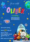Rob The Robot birthday invitation with FREE Inside out Thank You Tags Customizable Canva Template