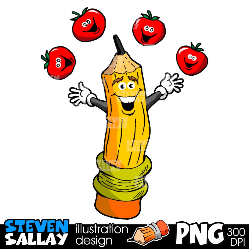 Back to School Cartoon Clipart – Juggling Apples Pencil Illustration PNG JPG. Commercial Use. Digital Download.
