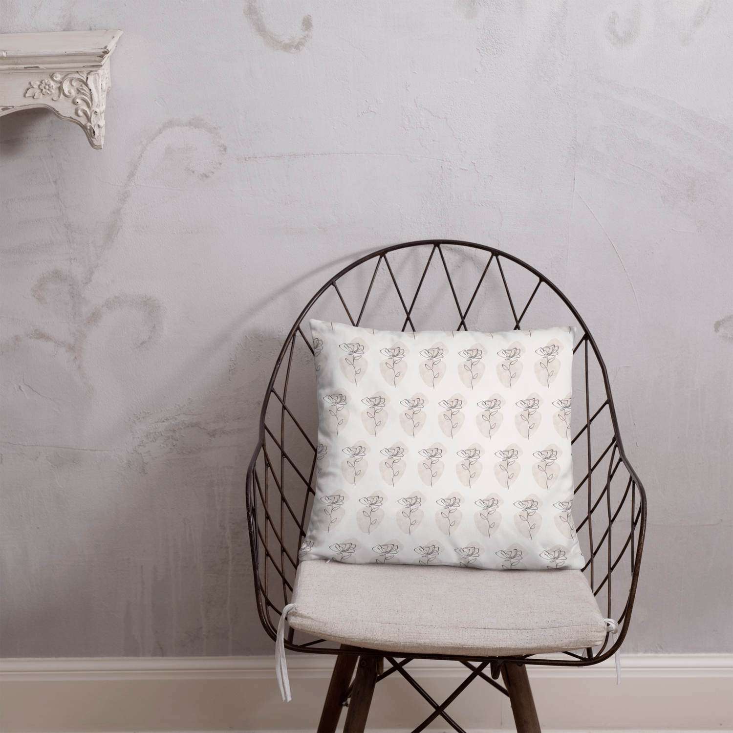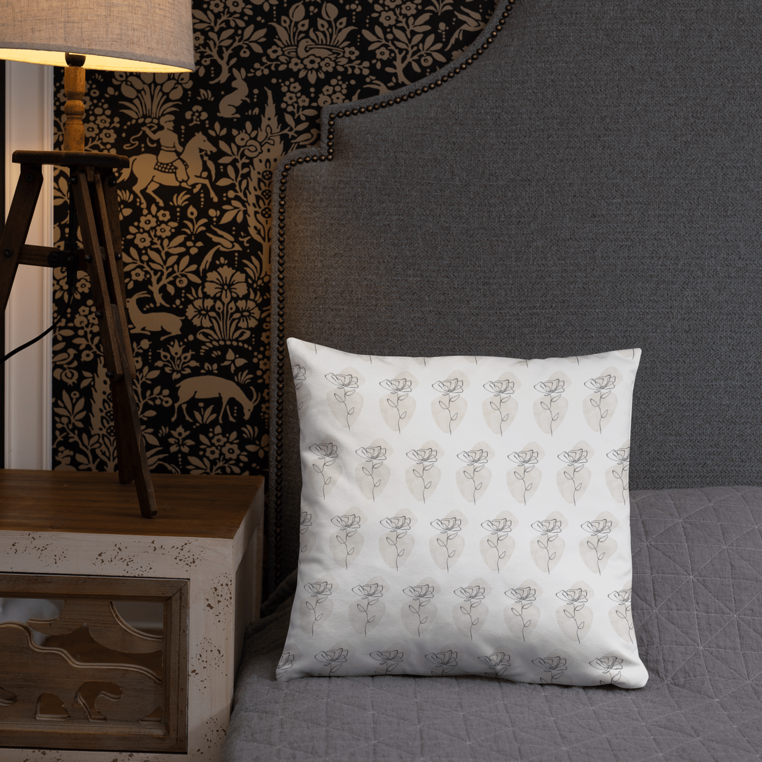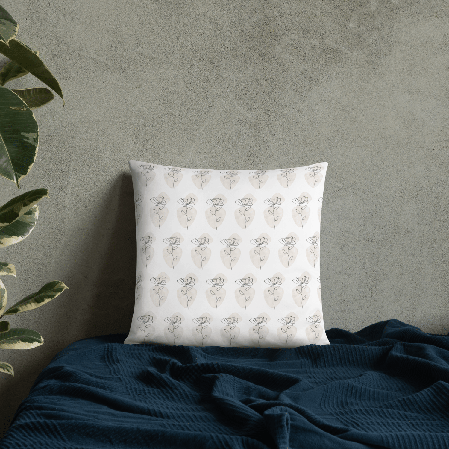 Black & White Modern Floral Line Art Throw Pillow – Minimalist Botanical Cushion