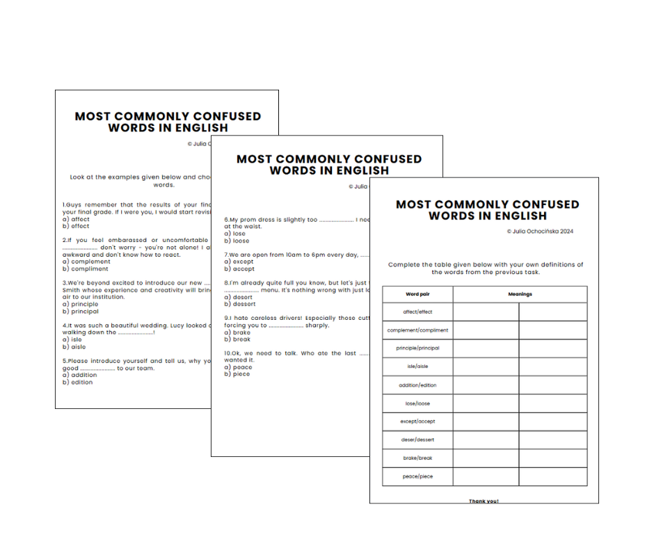 This short lesson plan is aimed to familiarize your learners with several pairs of some of the most commonly confused words in English and help them dissect the main semantic differences between the given items.