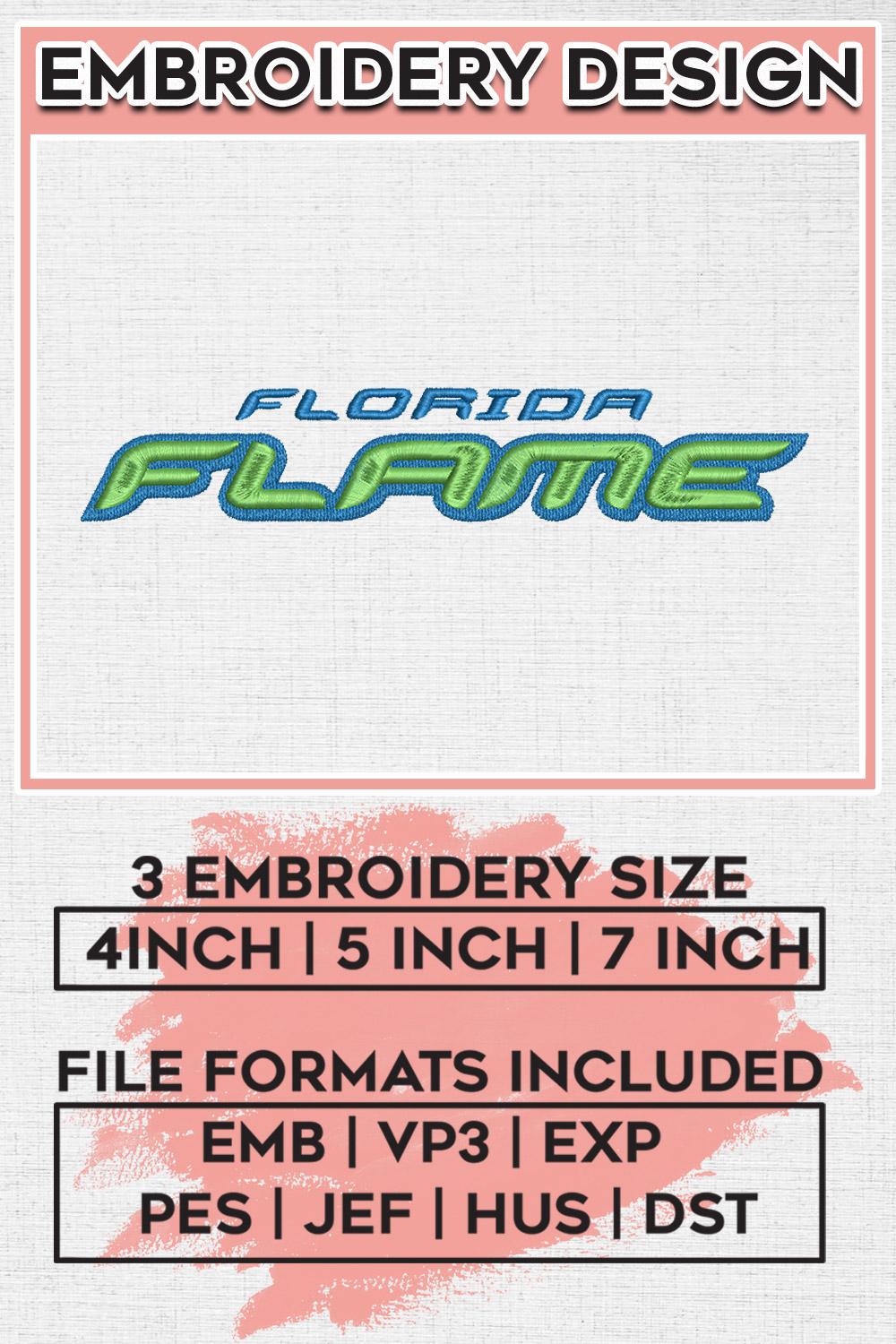 NBA G League Florida Flame Team Writing Logo Embroidery Designs, NBA G League Florida Flame Logo Machine Embroidery Files, NBA G League Basketball Team Logo embroidery designs, NBA G League Flame, Digital Download