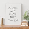 Be Still and Know That I Am God Bible Verse Printable - Psalm 46:10 Peaceful Wall Art, Bedroom Inspiration, Religious Decor