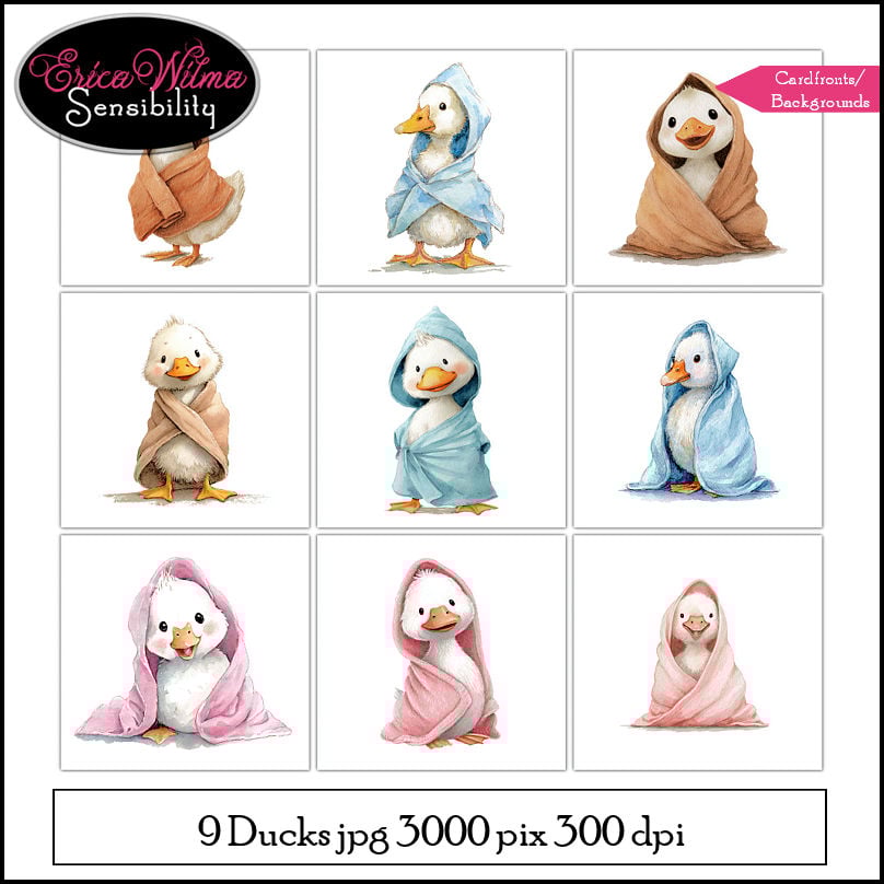 Wrap your designs in pure cuteness with this adorable Baby Ducks collection. This sweet set features nine charming little ducklings bundled in cozy blankets in soft pastel tones. Each duck is beautifully illustrated with gentle watercolor styling, expressive faces, and delicate details that bring warmth and charm to any creative project.