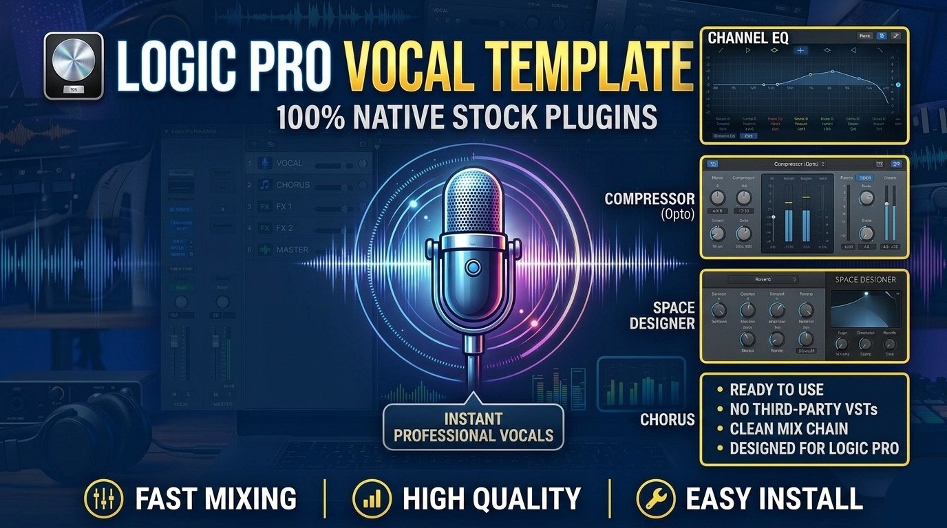 Template sa a fèt pou ede moun ki ap kòmanse nan mizik ak mix vokal nan Logic Pro travay pi fasil epi konprann kijan mixer la fonksyone.