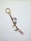 - Attachments: Spring-loaded gold keyring, rose gold lobster clasp