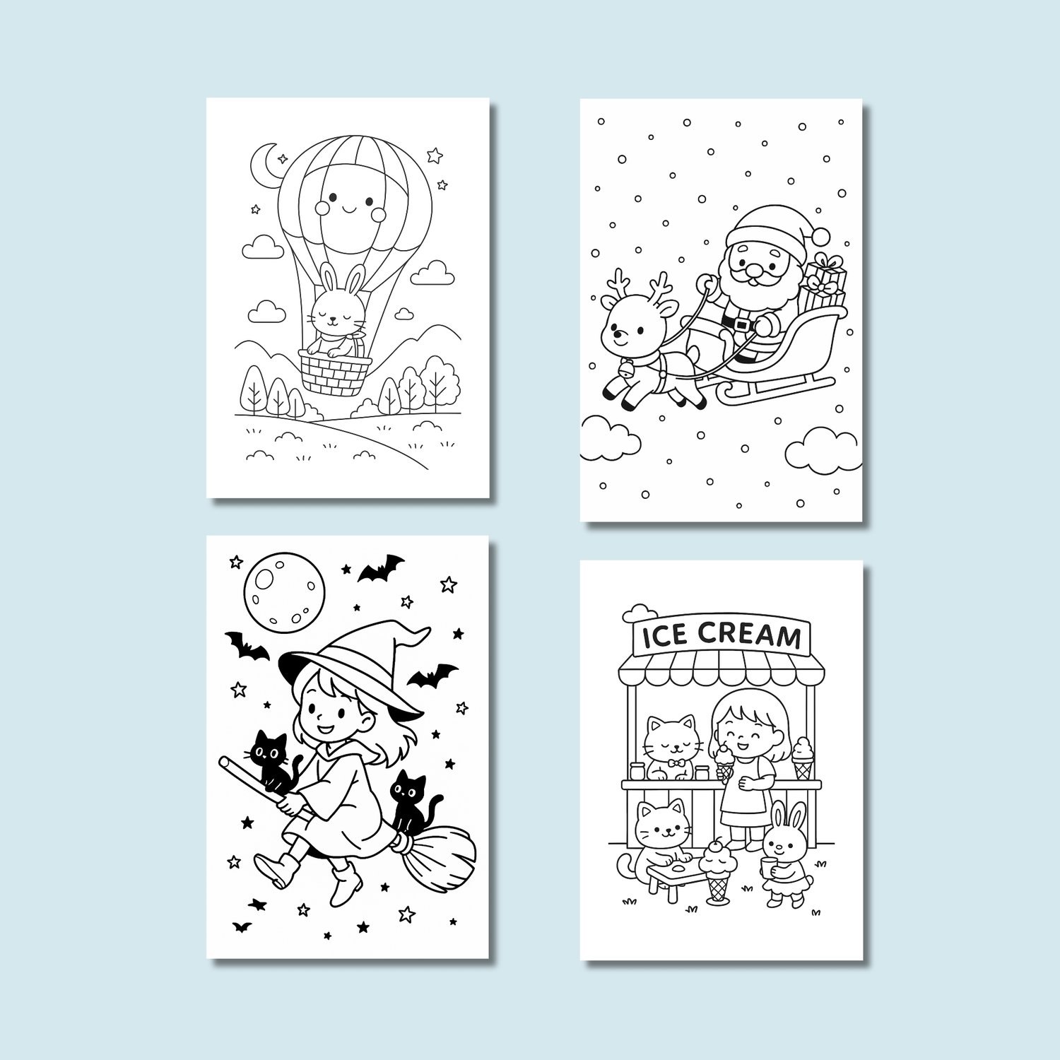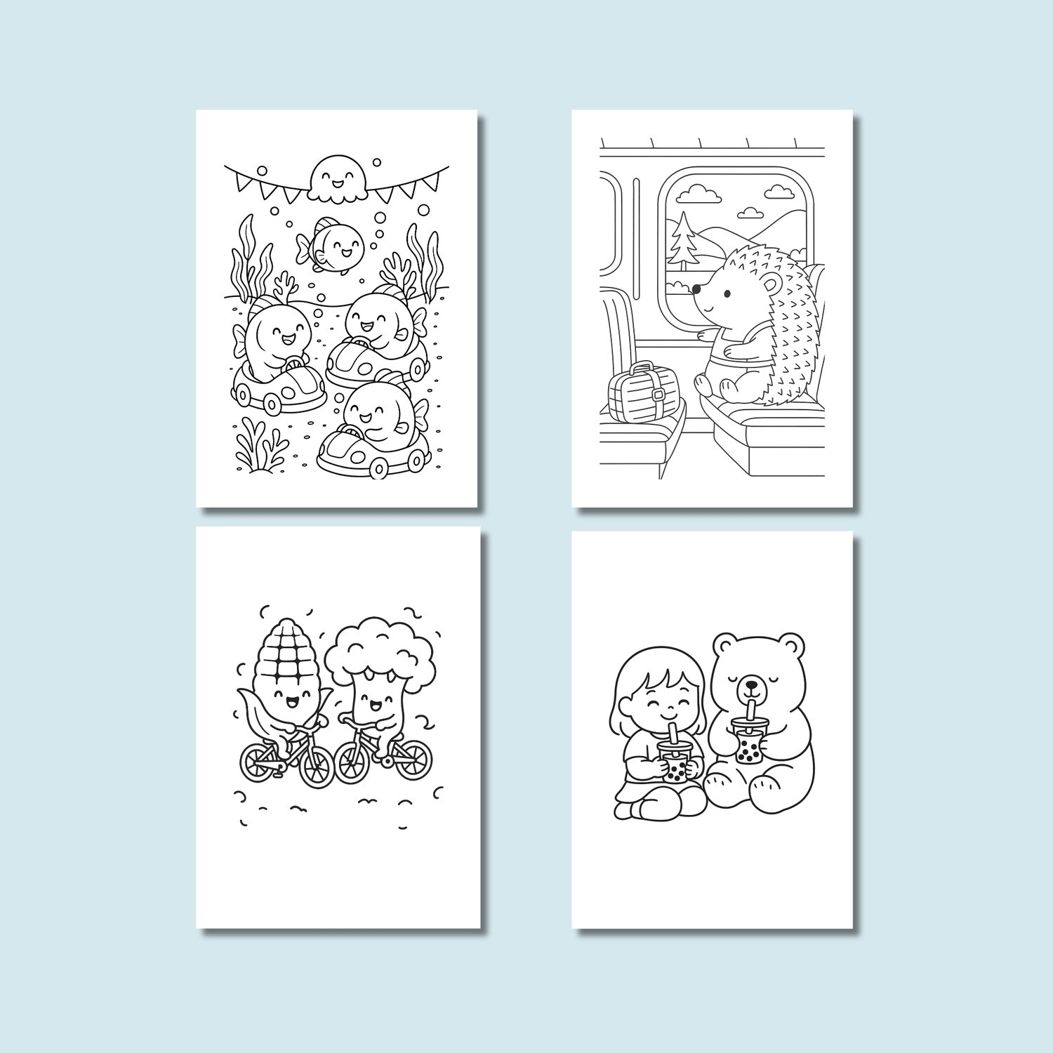 This massive collection includes 10 adorable everyday-theme books plus 2 festive holiday editions — perfect for kids, adults, teachers, and anyone who loves cozy, cute, and relaxing coloring activities.