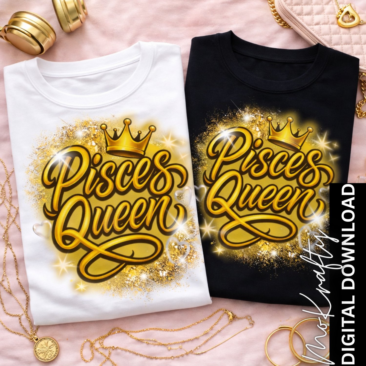 Pisces Queen Luxury Gold Digital Bundle - PNG Download for Shirts & Party Decor