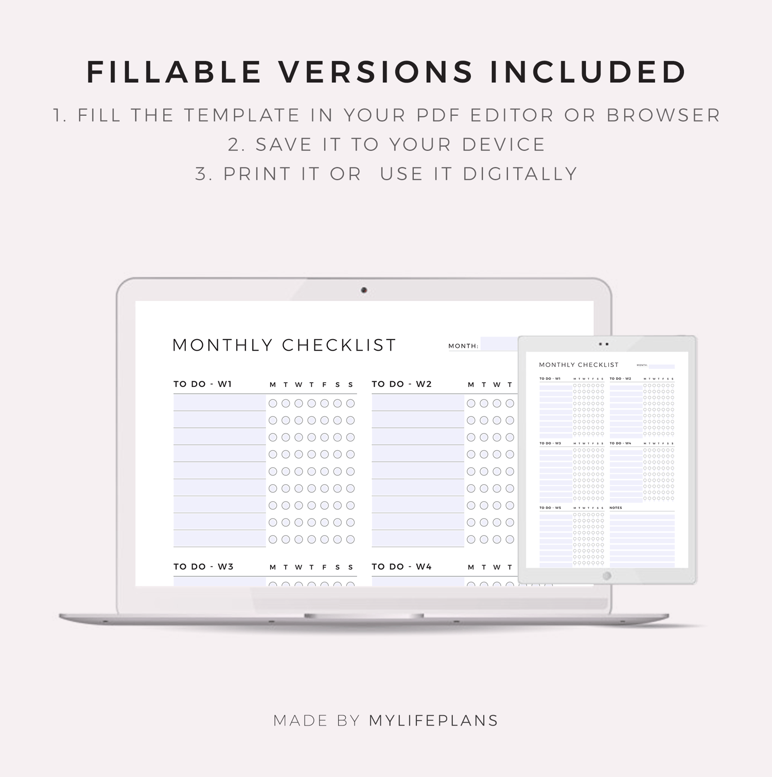 Monthly Checklist Template, Printable & Fillable, A4/LEtter Size
