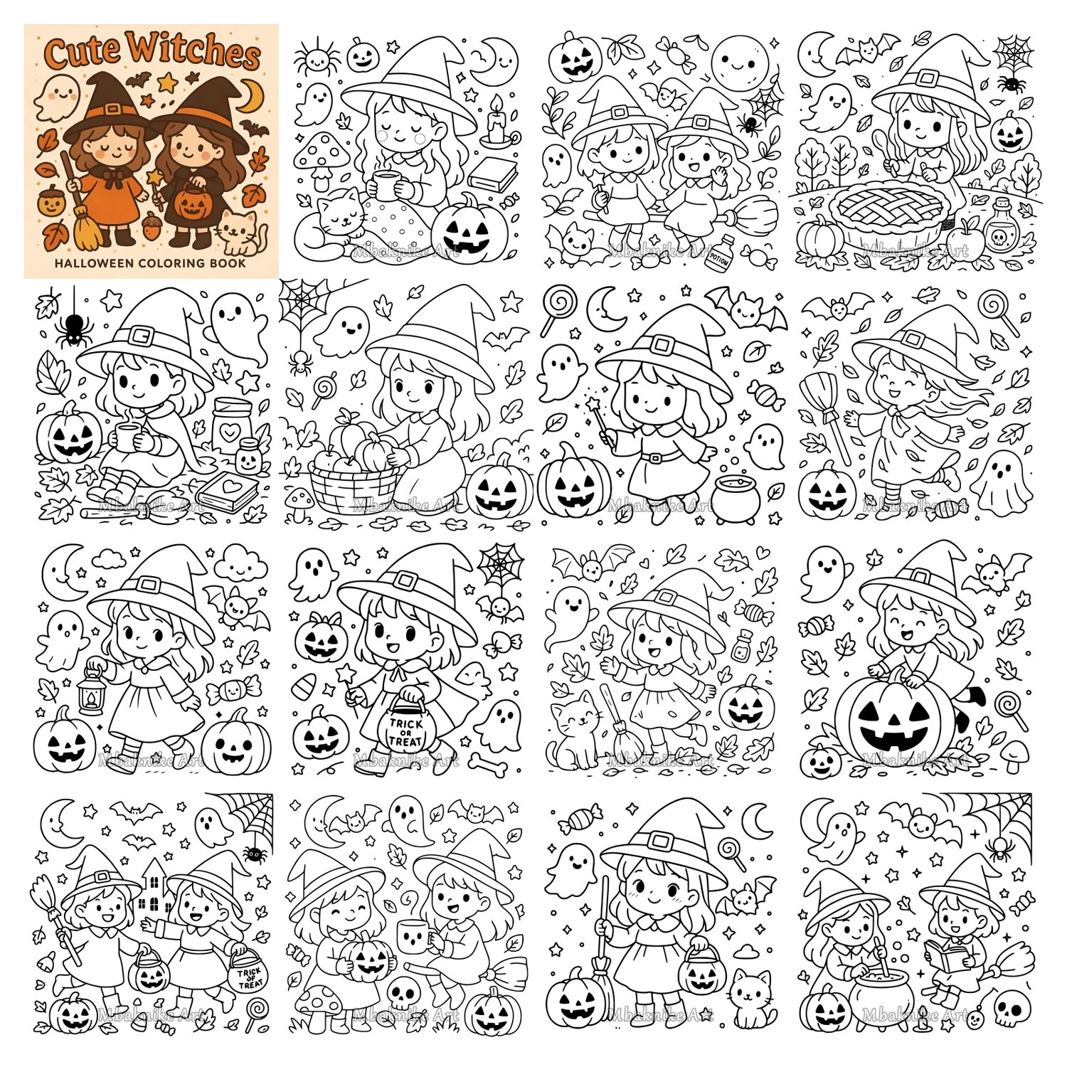 Add a sprinkle of magic to your Halloween with the Cute Witches Halloween Coloring Book! Each page showcases adorable cartoon witches in whimsical Halloween scenes—stirring cauldrons, reading spell books, flying with bats, and playing with ghosts and pumpkins. Designed to be fun and friendly, these illustrations are perfect for kids, families, and anyone who loves a dash of spooky cuteness.