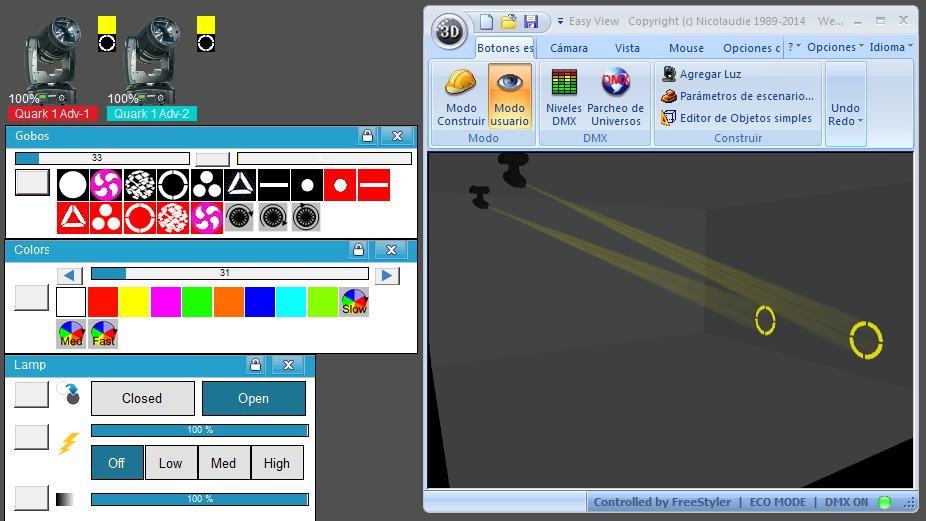Esta Librería SSL2 está optimizada para trabajar con Magic 3d Easy View. Es decir para ver una representación 3D de las secuencias que estemos realizando con Freestyler, QLC+ o cualquier otro soft que se conecte con Magic 3d.