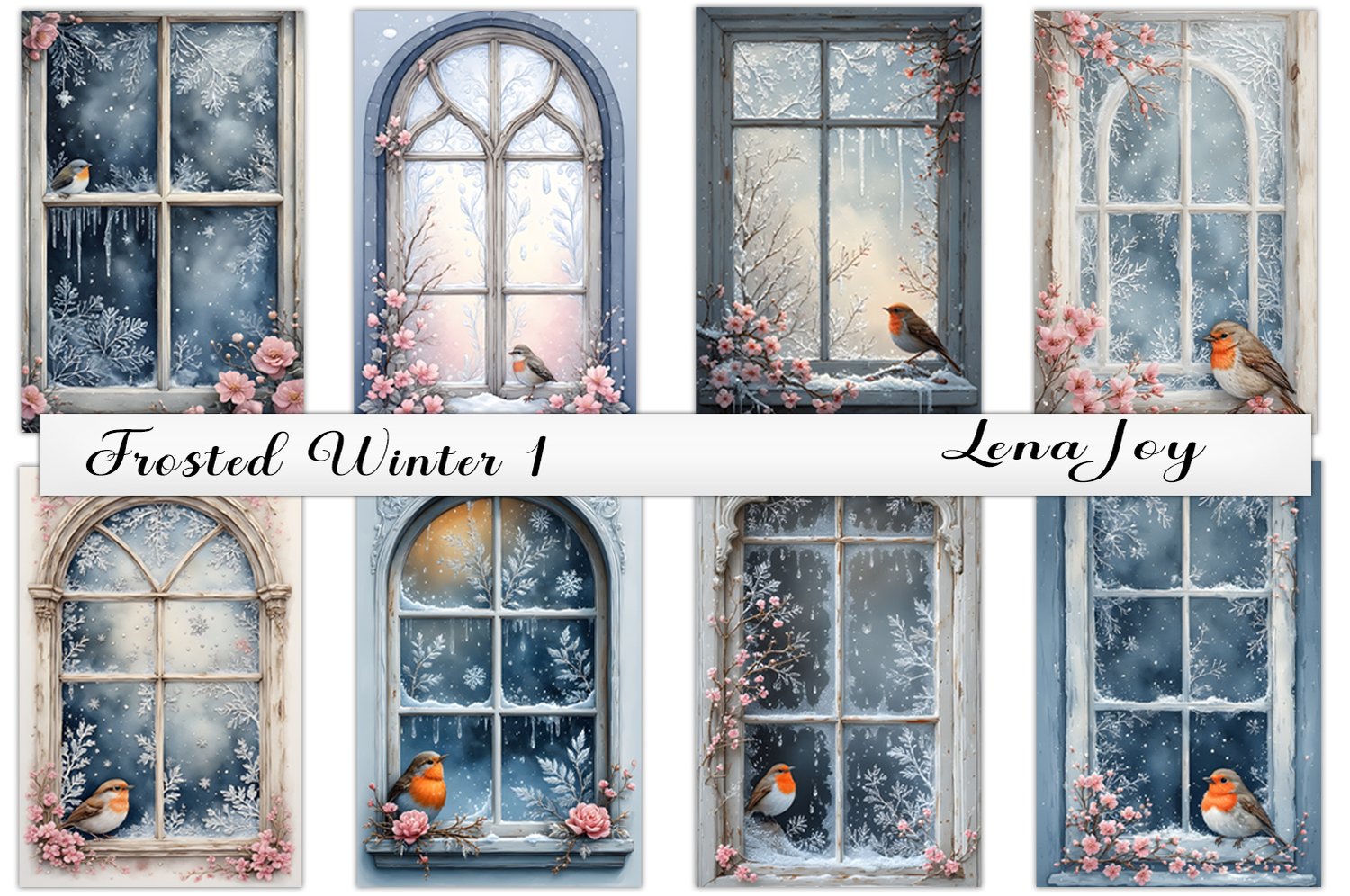 My Frosted Winter 1 kit is part of three individual kits that I created, titled Frosted Winter. The clip art and papers are perfect for creating a frosty winter scene. This kit has frosted windows with birds sitting on the sill, frosty papers, and beautiful floral swirls.