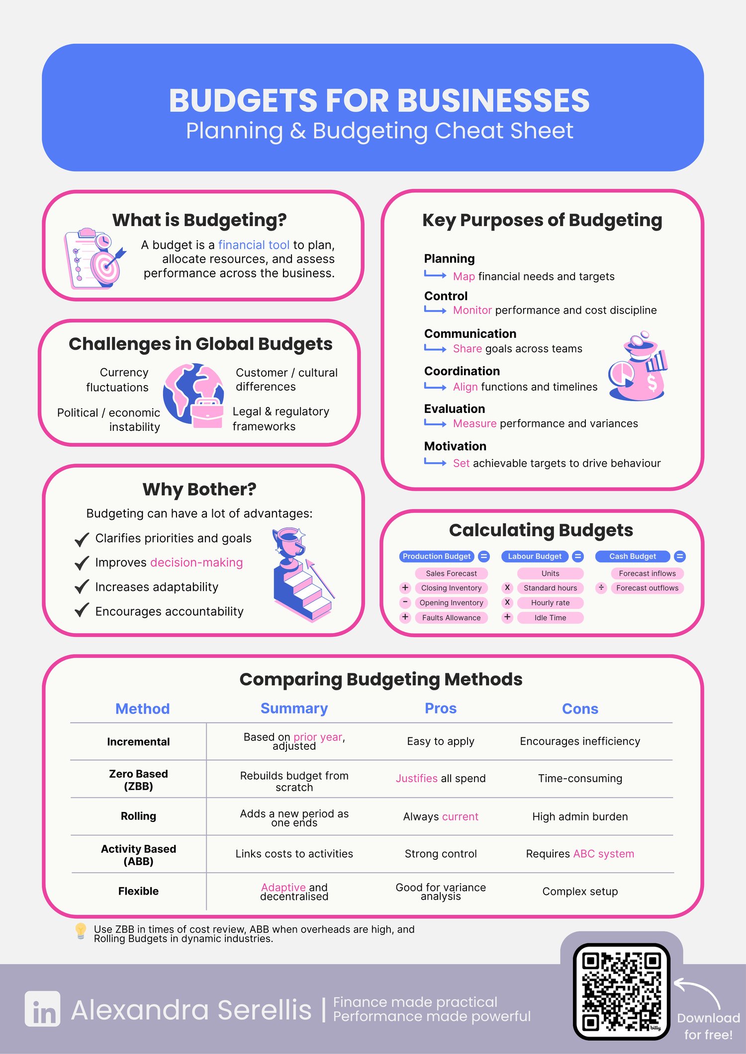 Use this to onboard new team members or complement your internal training. It covers a range of methods, and highlights where budgeting supports decision-making, control, and agility.