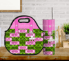 Alpha Kappa Alpha AKA Sorority Denim and Leather Purse Look 20oz Skinny Tumbler and Lunch Tote Design PNG Bundle Pink and Green sublimation