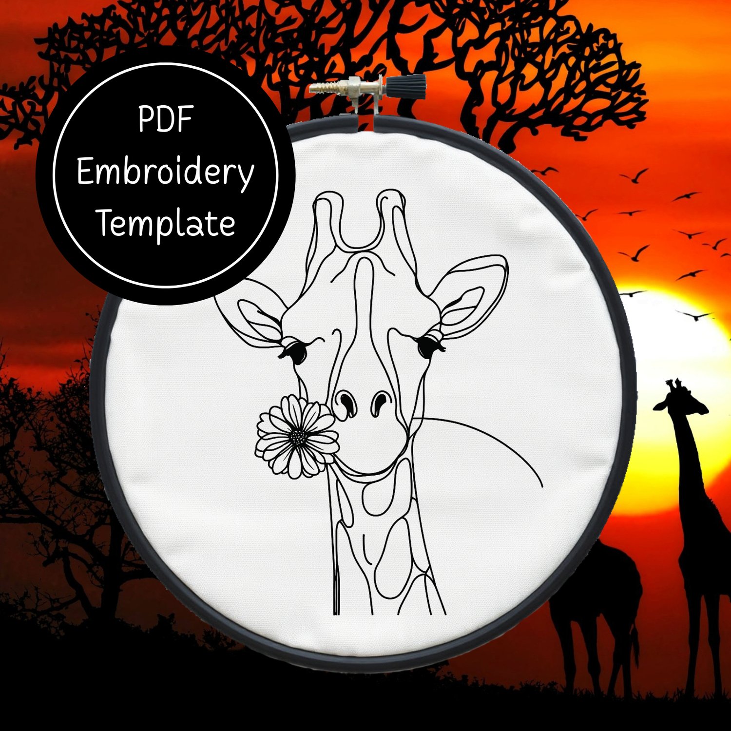 Giraffe - Hand Embroidery Template - Instant Download