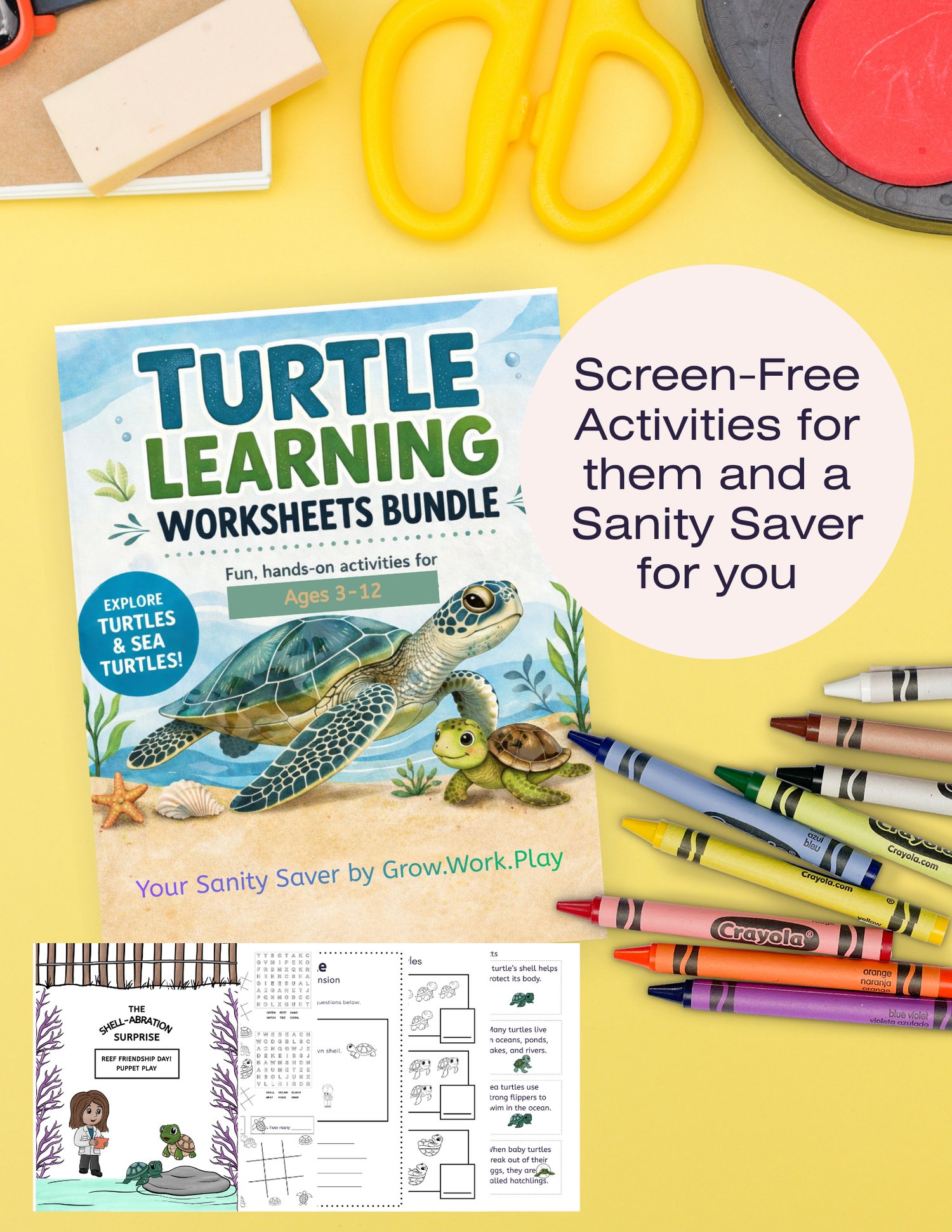 Make learning fun with this adorable Turtle Learning Worksheets Bundle This printable pack is filled with hands-on turtle and sea turtle activities that help children learn through play, creativity, and simple skill-building. The bundle is presented for ages 3–12 and includes turtle- and sea-turtle-themed printable activities.