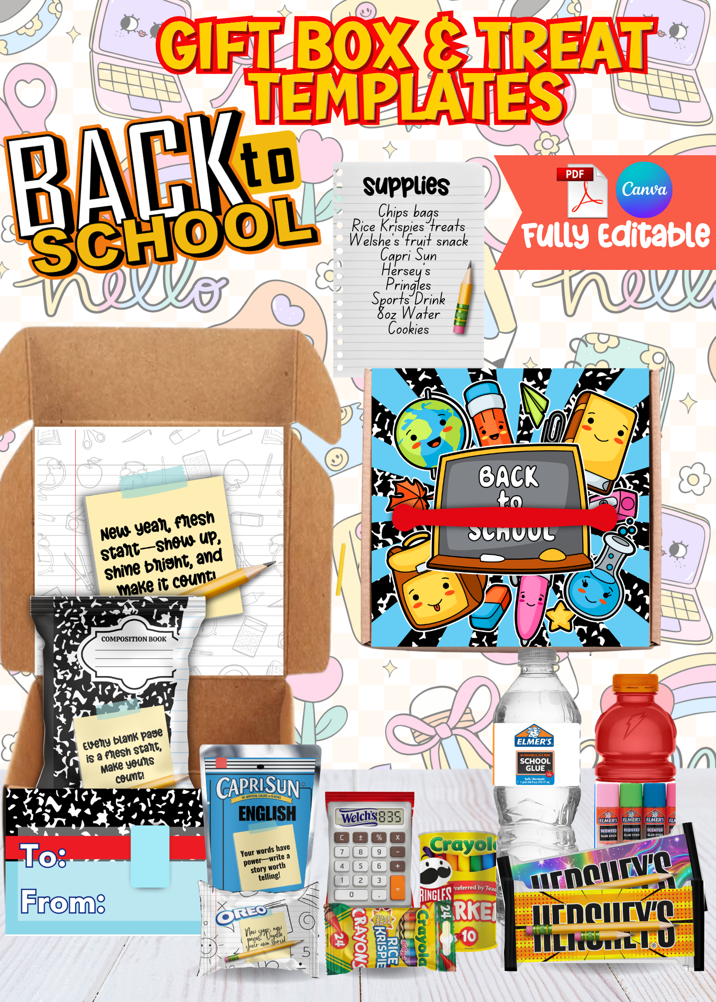 Back To School Gift Box with Treat Templates Bundle- Fully Editable