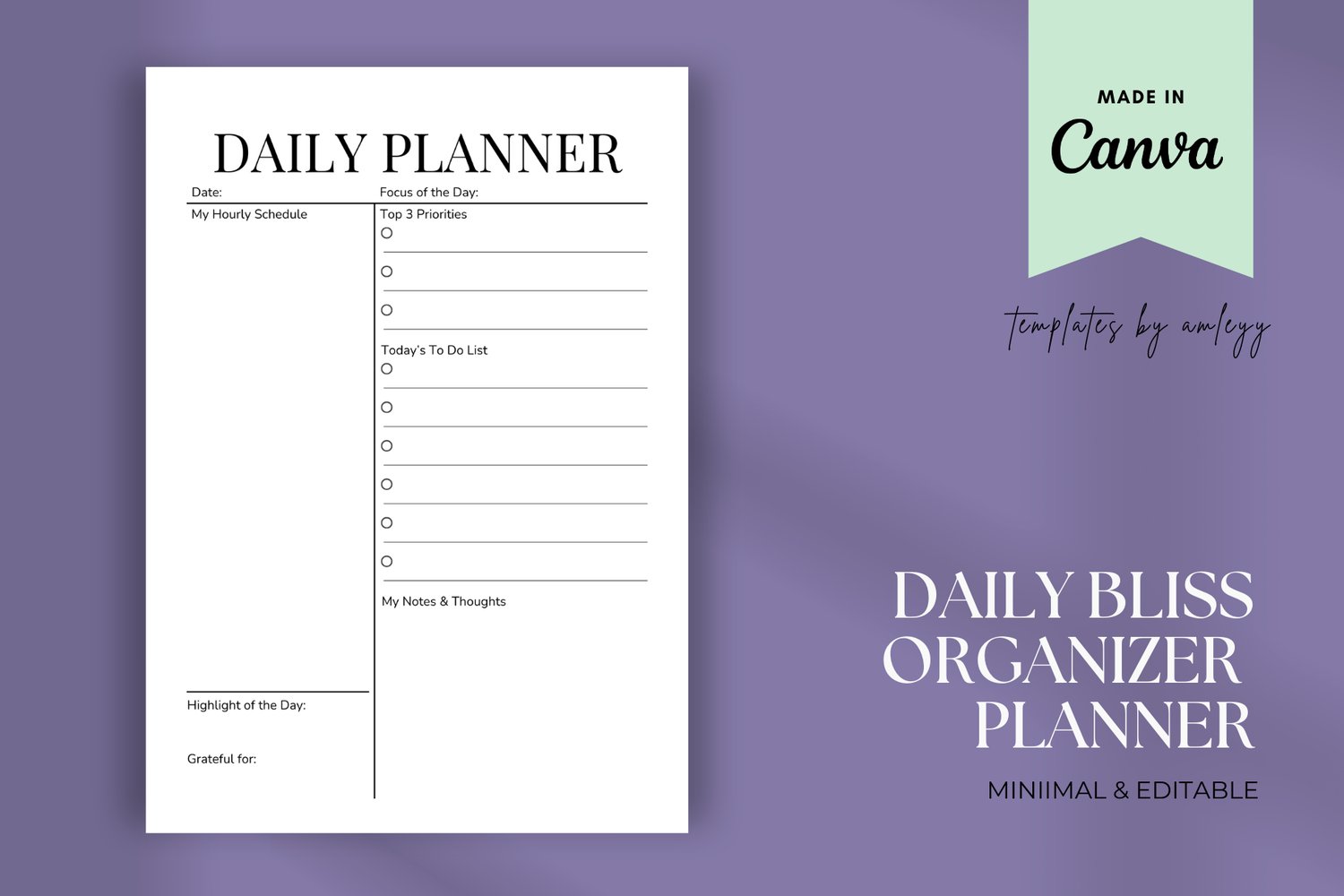Daily Bliss Organizer Planner | Minimal Aesthetic Canva Template | Printable & Digital Daily Schedule