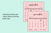 This calendar comes in two sizes: 3x3 and 4x4 inches, each in A4 and Letter formats ready to print. It also includes two versions: Monday or Sunday start.