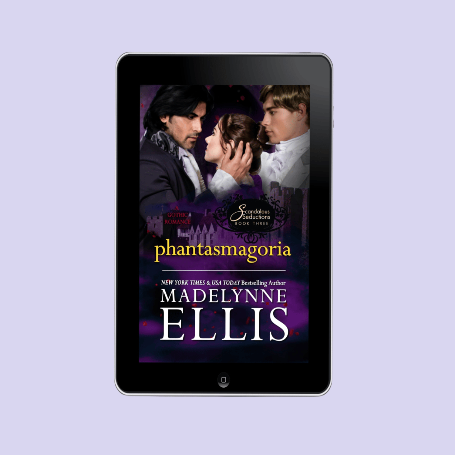 Phantasmagoria is a dark, tempestuous, spicy Regency historical romance featuring three tortured souls who live for passion, heart-searing angst, obsession, cruelty, diabolical behaviour, and decadence. Expect ribald language, MMF interactions, and tangled relationships. Best keep a stiff tipple and the smelling salts to hand.