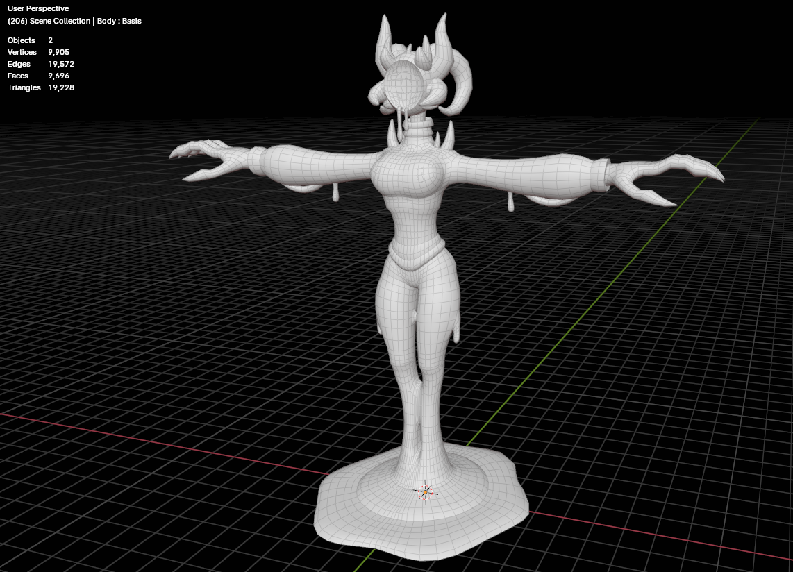 This is a 3D model of a species I created called the Taarians. This is the "feminine" shaped variant of them. Taarians are a subterranean race of sentient slime/goo.