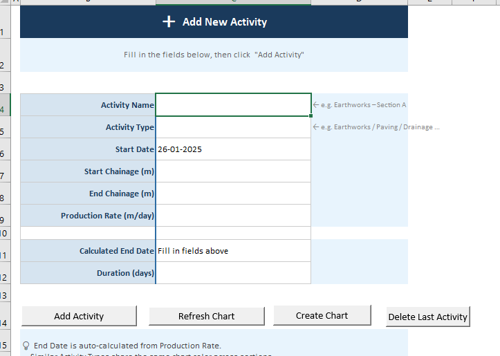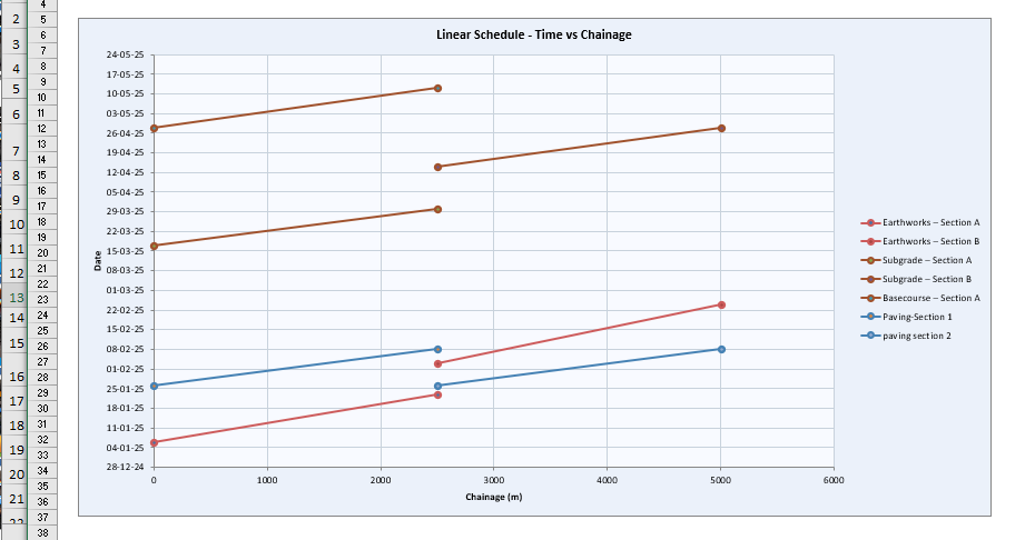 Revolutionize your linear project planning with our Time-Location Scheduler, designed to visualize progress across distance and time on a single, intuitive chart. Featuring a dedicated input interface.