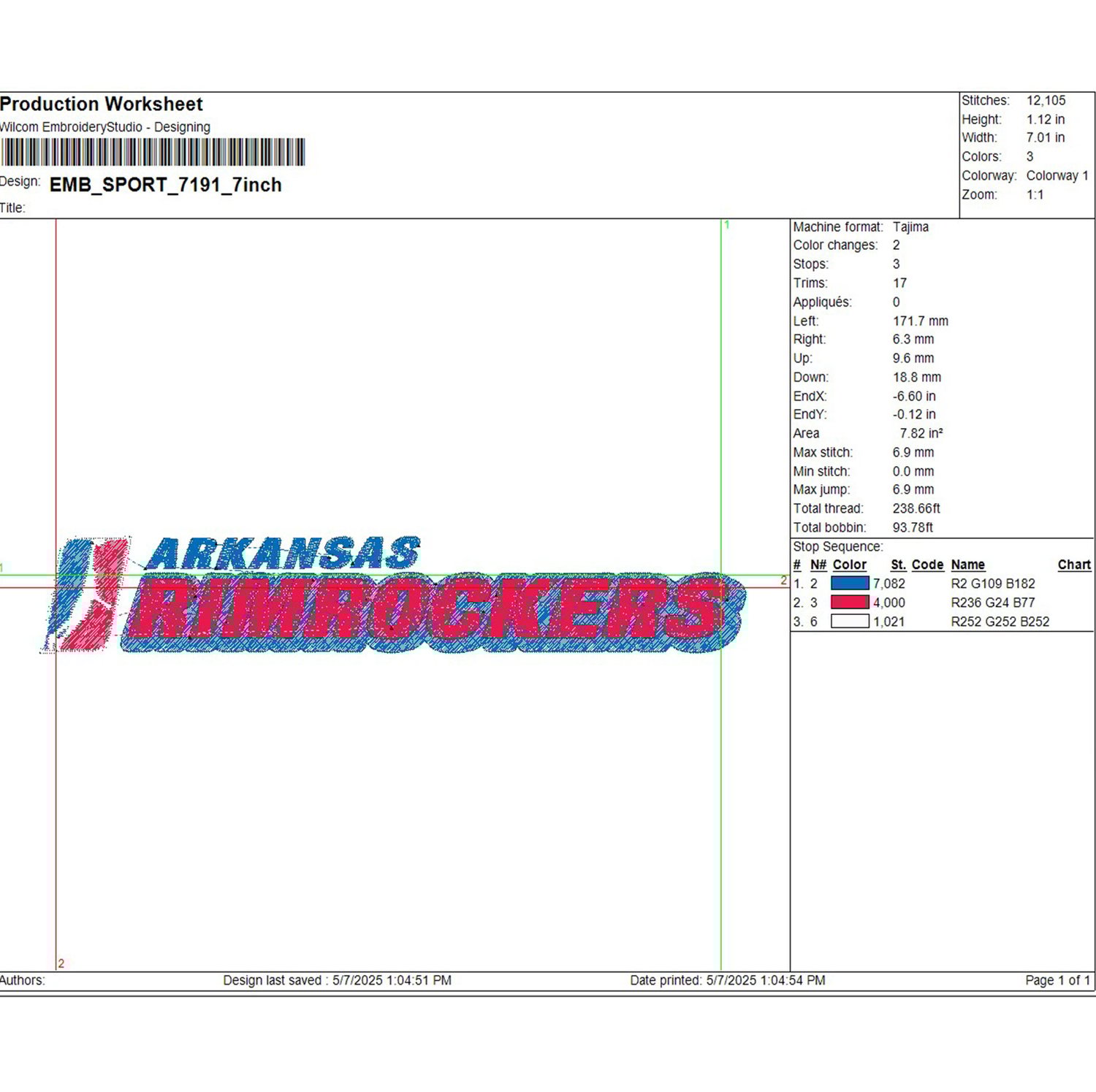 Arkansas RimRockers NBA Team Writing Logo Embroidery Designs, NBA Logo Machine Embroidery Files, NBA Basketball Team Logo embroidery designs, NBA RimRockers, Digital Download