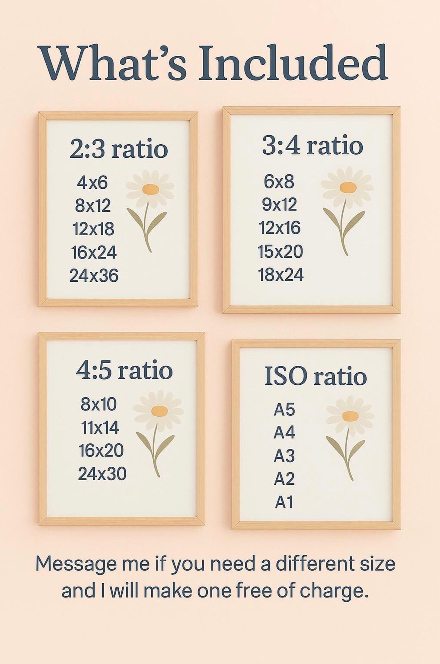 Your purchase includes four standard ratios to fit a variety of frames:
