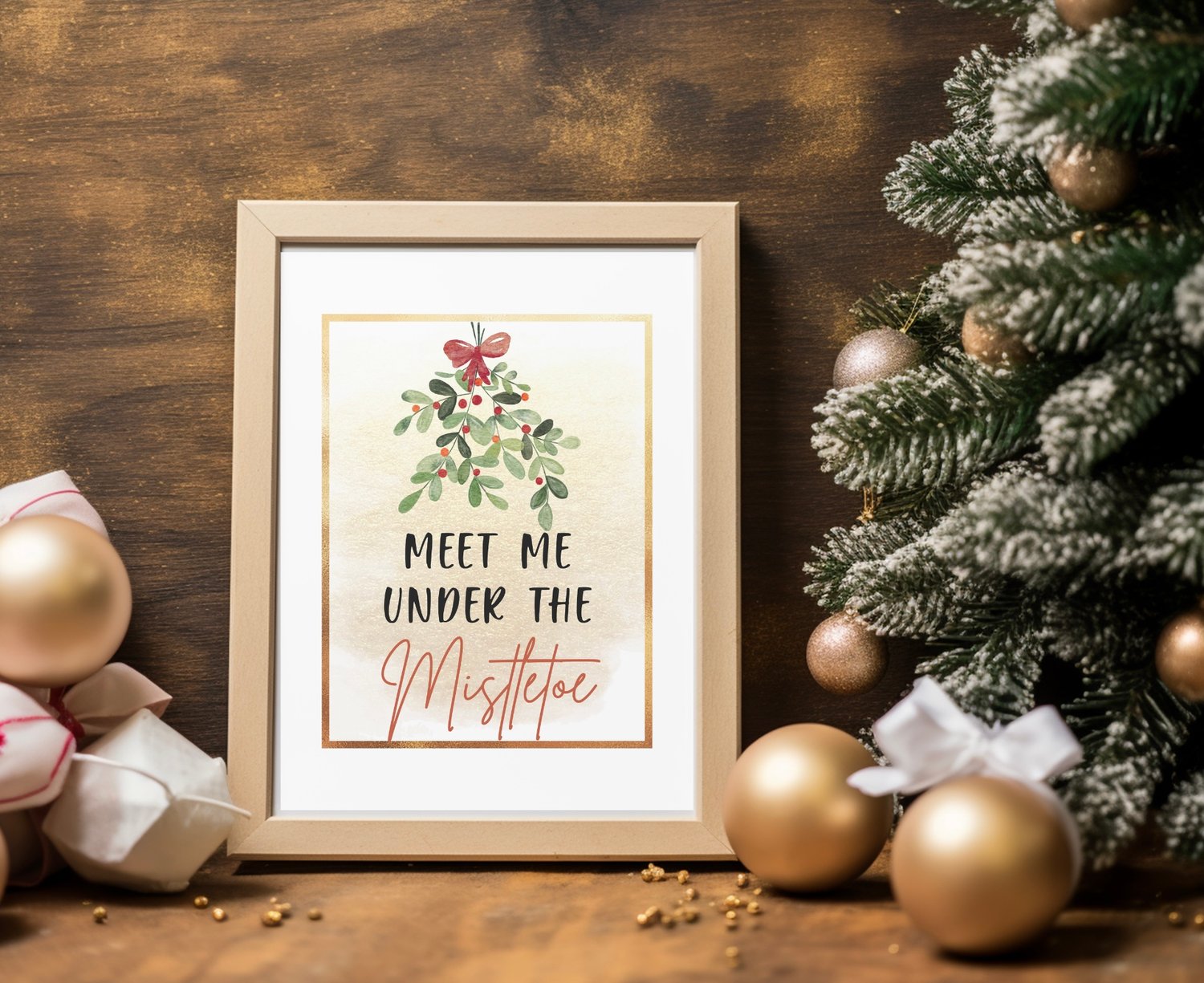 Meet Me Under the Mistletoe Printable Wall Art | Romantic Christmas Sign | Holiday Digital Download DecorP