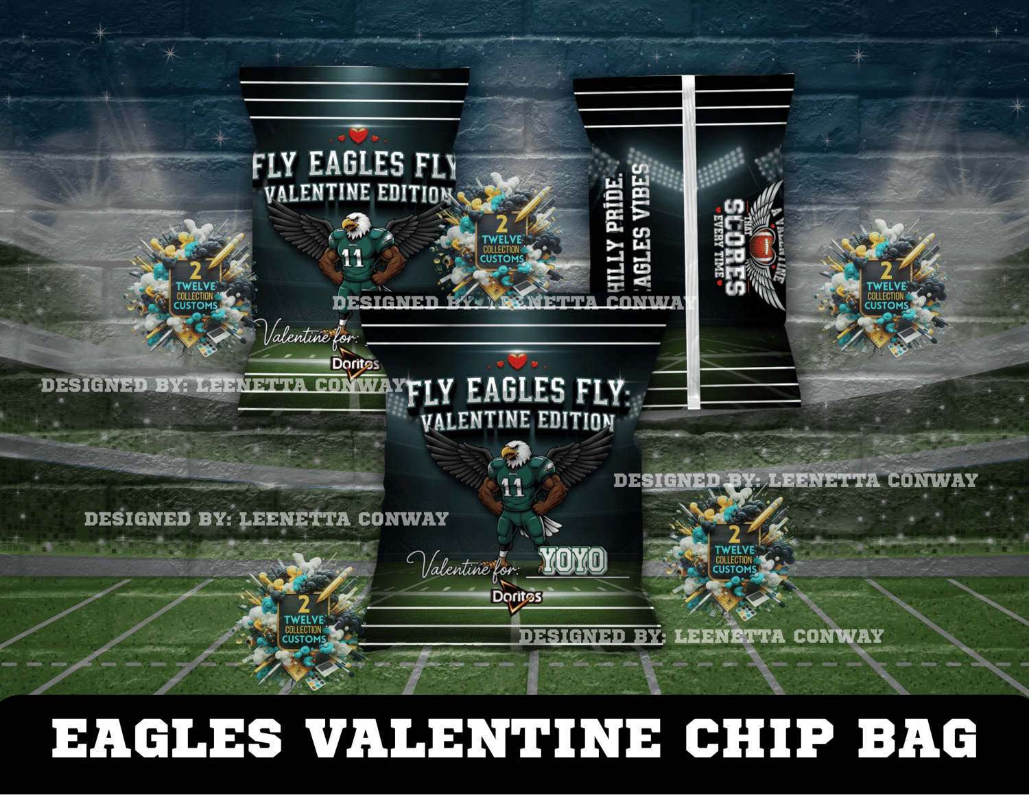 Eagles Valentine’s Day Chip Bag Design – Canva Template 💚🦅