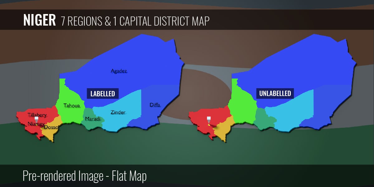 Niger - 7 Regions & 1 Capital District Map (3D + Pre-rendered Images)