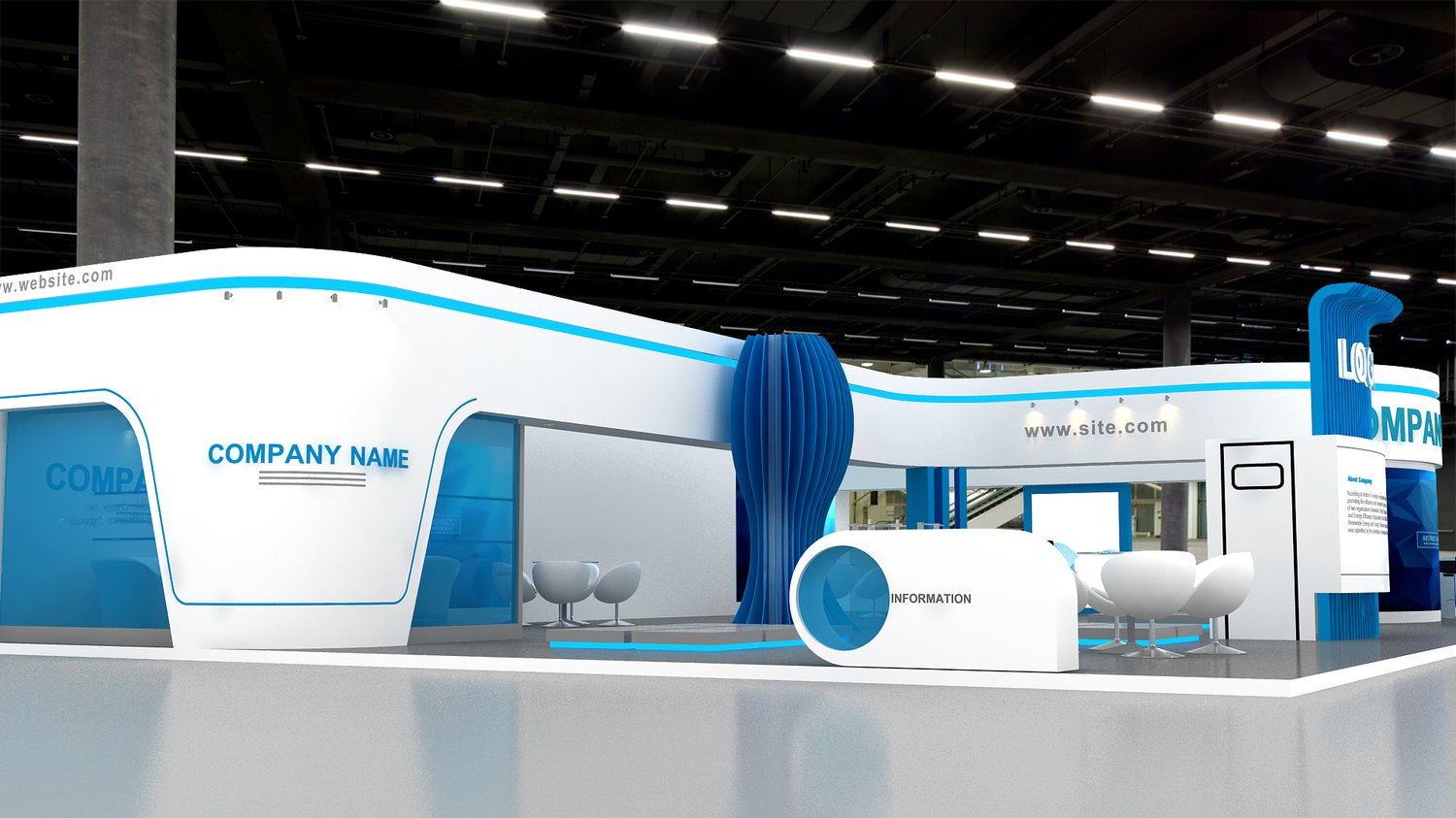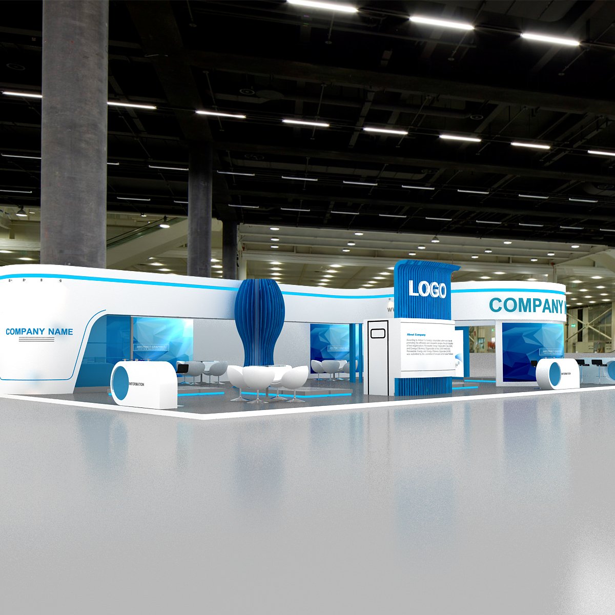 This professional 3D booth model is designed for exhibitions, trade shows, expos, fairs, and event displays.
