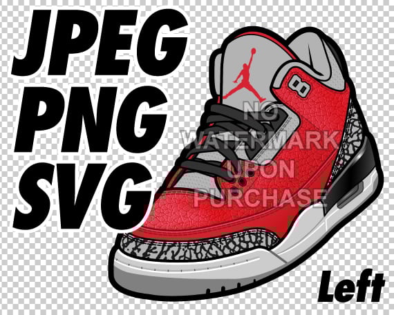 Air Jordan 3 Red Cement JPEG PNG SVG digital sneaker art