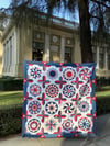 Some knowledge of English Paper Piecing is assumed, but the tutorials are on OPQuilt.com if help is needed. Elizabeth of OPQuilt.com is now making this quilt in red, white and blue; some of the new blocks are shown in this colorway.