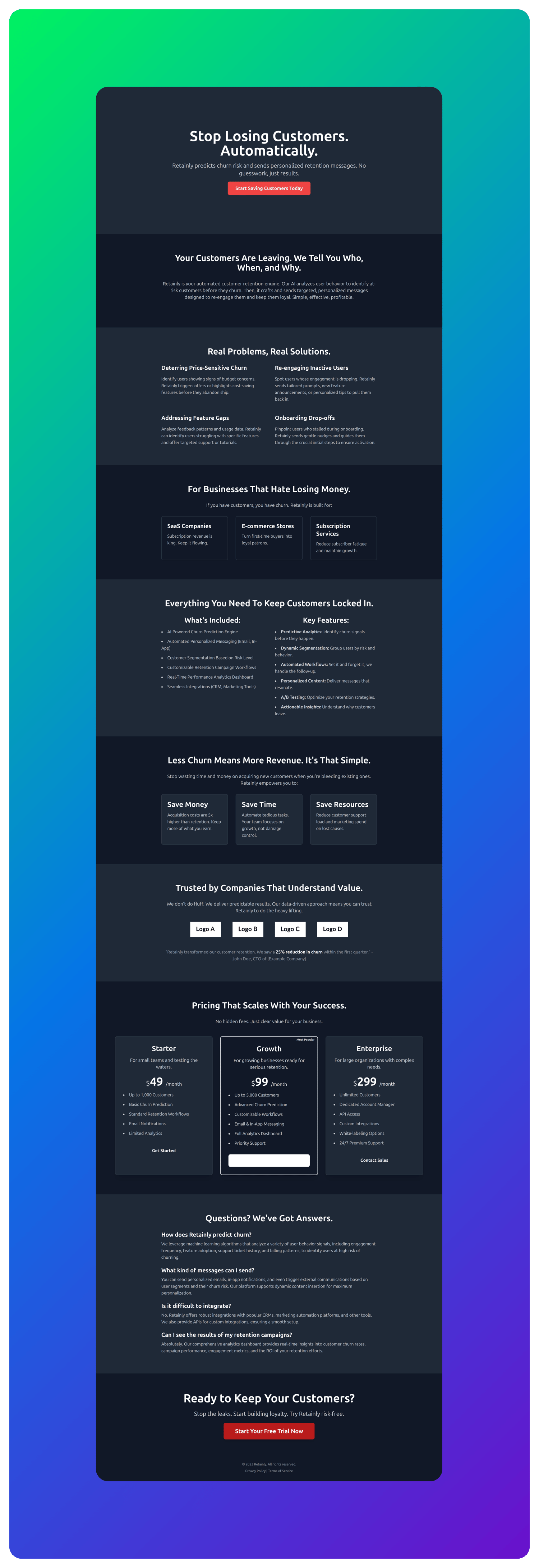 Retainly — Customer Retention & Churn Prediction SaaS Landing Page