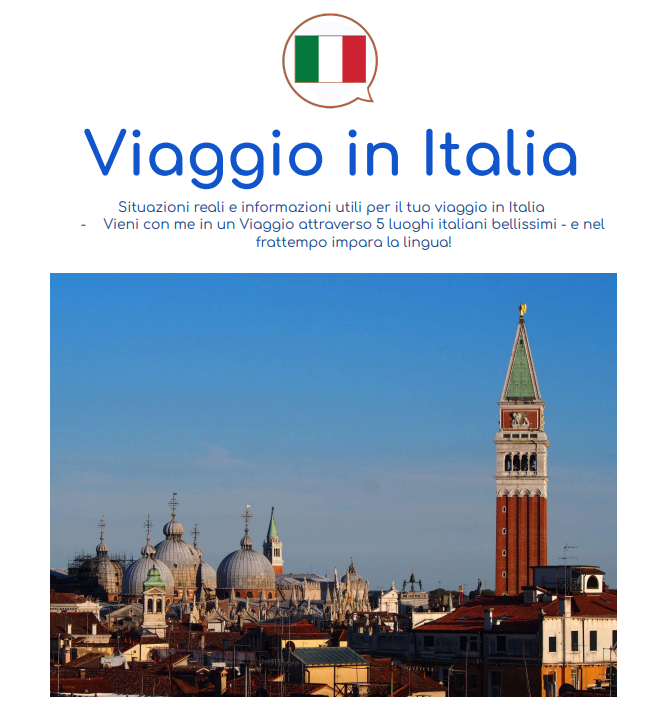Un pdf e un file audio che descrivono 5 posti bellissimi: Venezia, Firenze, Napoli, i parchi naturali e il mare della Sicilia! Qui troverai: testi, dialoghi, situazioni realistiche utili per il tuo viaggio, elementi di grammatica, esercizi; per studiare durante il weekend
